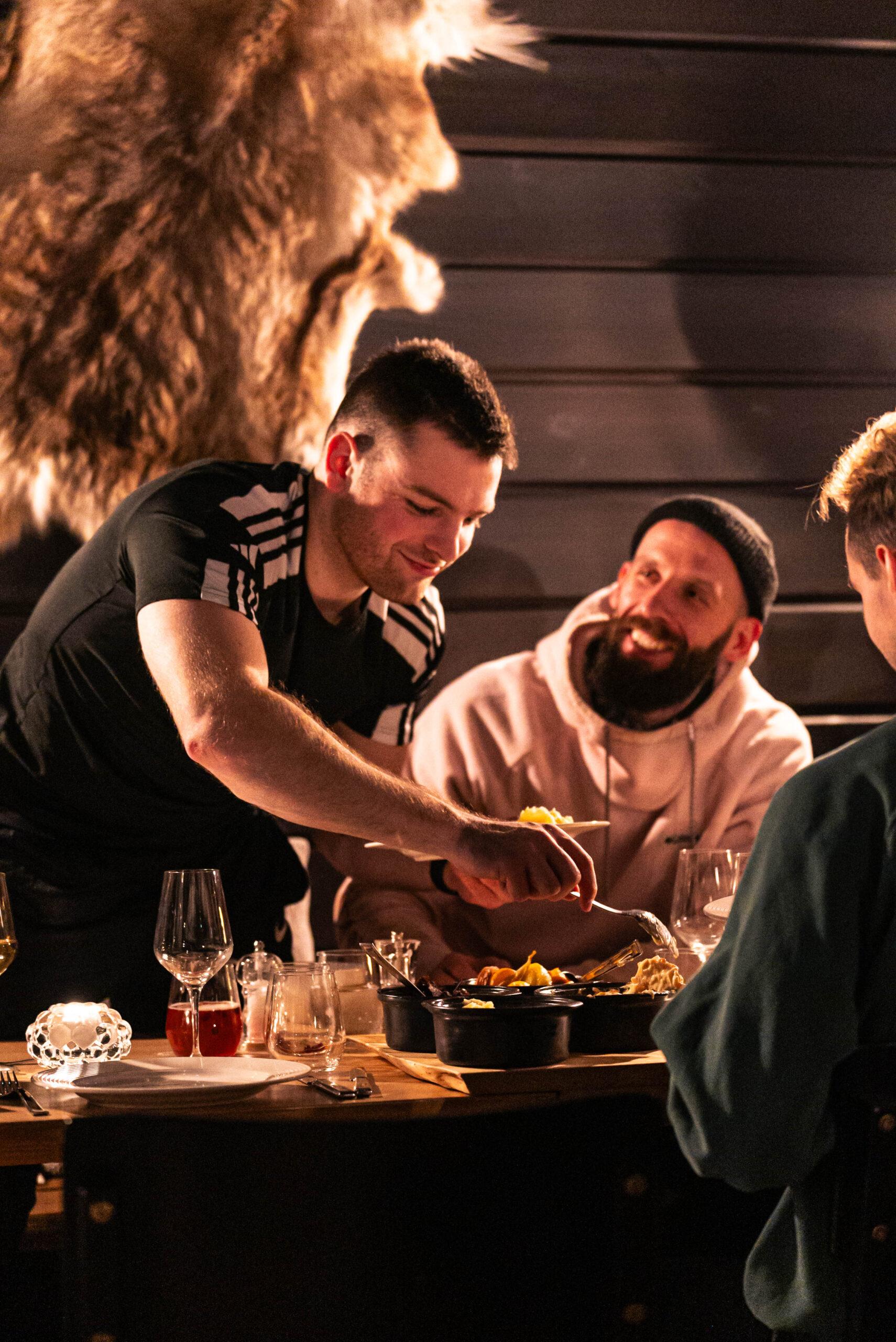 Our restaurant at Northern Lights Ranch is a place where culinary excellence meets the natural wonders of Lapland. Our carefully created menu showcases a delightful blend of Finnish and Nordic flavors with a touch of international flair. To make your dining experience even more enchanting, we offer the chance to dine adjacent to our illuminated reindeer enclosure, where our lovely friends are roaming just outside the dining room windows. We also welcome guests to enjoy dinner with us who are not staying with us and table reservations can be made by entering the details of your requested visit below.