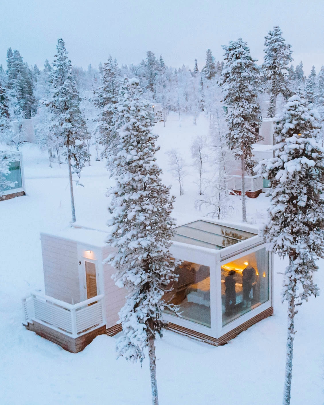 All our Sky View Cabins are designed with careful thought in Scandinavian style and high standards to best fit to Finnish Lapland’s extraordinary environment. All the igloo-style cabins feature glass igloo like large windows and heated glass ceilings that give a perfect view to the beautiful night sky and maximize your opportunity to see the northern lights dancing in the sky.