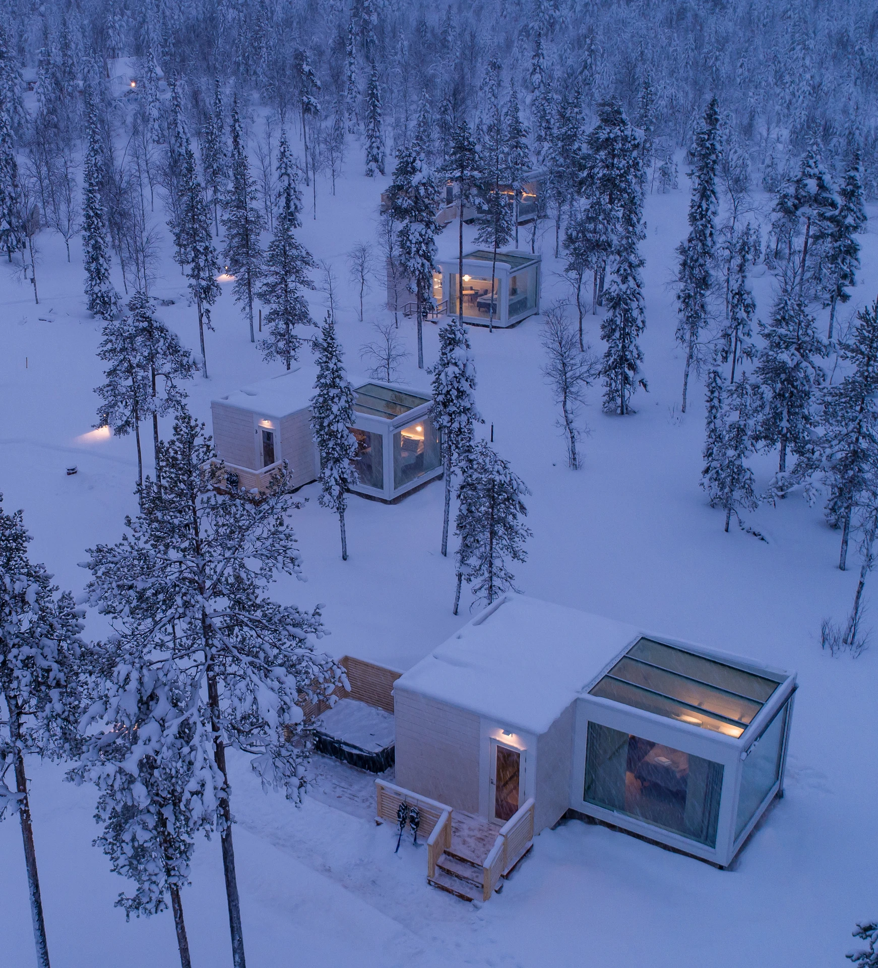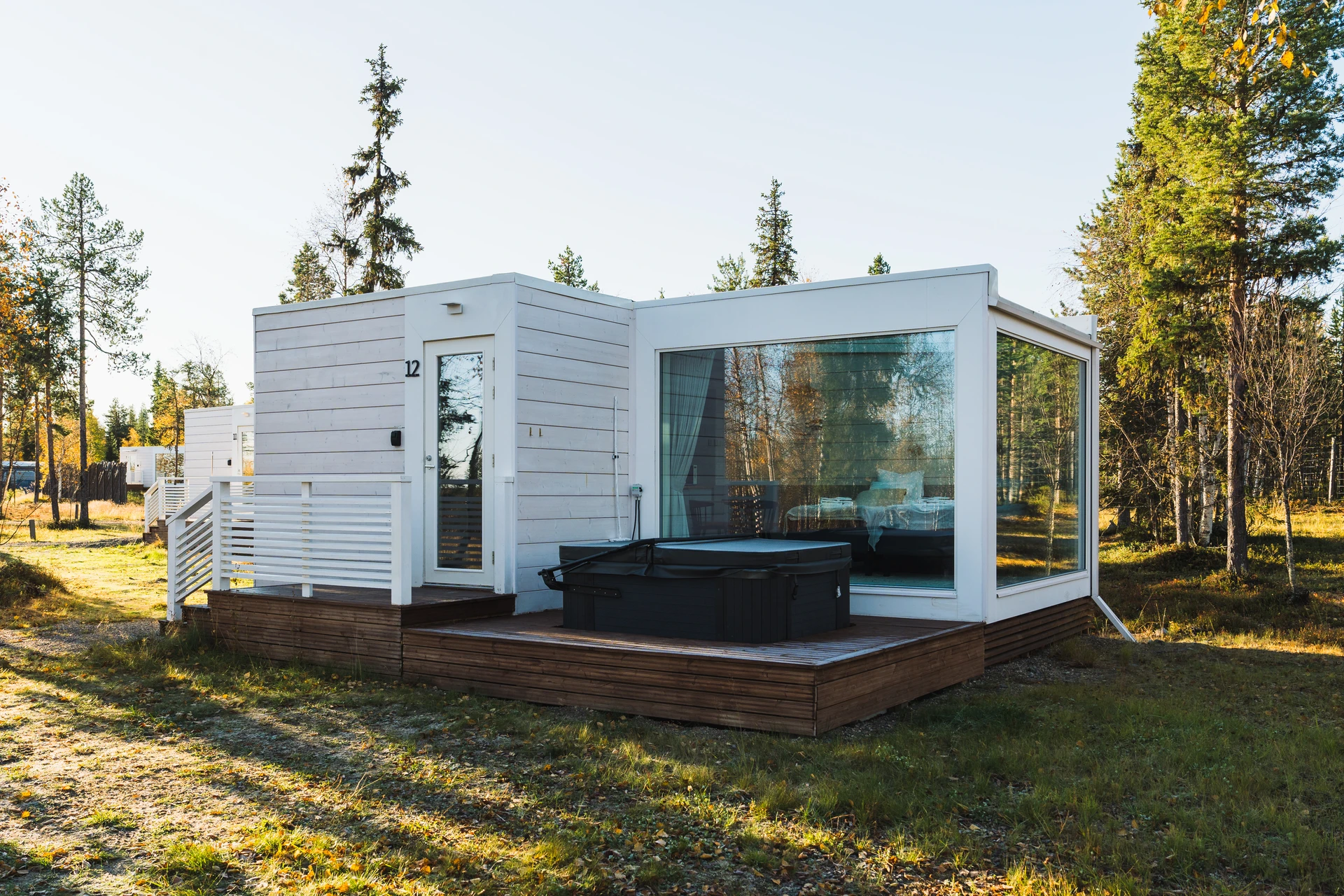 Sky View Cabin Deluxe glass-igloo type cabin upgrades your northern light holiday to the next level. Deluxe Cabin features a private outdoor hot tub designed especially for the Northern Lights Ranch hotel. Enjoying the silence and the surrounding winter landscape under the stars and aurora borealis from the luxury of your own hot tub is an experience you’ll surely remember for a lifetime.